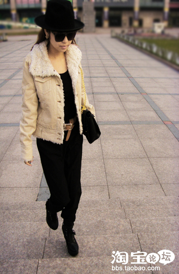 是不能少的色系 这个颜色的外套很少见的 何况的做成机车款的棉衣+墨绿色的棉裤 呵呵 亲们也可以试试