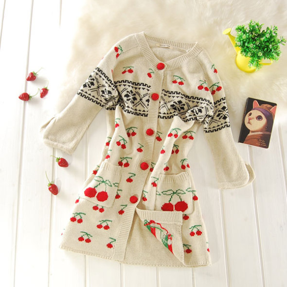 【NO.8 红樱桃 图腾花纹 毛衣开衫 连衣裙】