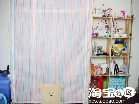 下面晒另一面墙。大家先看个正题图! 简易衣柜和小木架子都是在淘宝买的,清单在最上面,和红桌子是一家! 先说说小木架子。 木架子里放了偶各种各样的东东!用的吃的化妆品面膜。嘿嘿。一个一个给大家说哈! 这个格子里都是偶的护肤品!各种都有! 最显眼最大瓶的是最近刚败的!在淘宝搞活动的时候买的! 说是玫瑰纯露有美白的功效,真的是超级多啊 !用来泡纸膜再合适不过了! 中间的白色袋子里是化妆棉,我最喜欢用化妆棉了! 擦脸从不用毛巾,毛巾毕竟会滋生细菌! 偶都是用化妆棉来擦,擦完就仍了!很方便也很卫生!嘿嘿。 购于淘宝! 右边的格子里是偶和男朋友的照片! 下面还有一对咖啡杯,也是在淘宝买的! 据说杯子象征着一辈子!嘿嘿! 这个格子里的全是面膜,而且都是在淘宝买的! 细长的瓶子是昭贵芦荟的水,偶一般用来做纸膜,补水还很舒服! 下面的是玫瑰面膜,当时团购买的,很便宜,就想着买瓶试试! 寄过来后用了一次,里面真的有一瓣瓣的玫瑰花朵!而且味道也是玫瑰味! 用完后感觉真的好像白了!哈哈!就是洗的时候不太好洗~ 玫瑰面膜右边的是御泥坊的面膜,这个真的是我的最爱!想着正在用第二瓶! 一个月钱我额头上的痘痘简直都不能看了!全都是! 一瓶面膜用完后一个痘痘都找不到了!而且皮肤光滑了不少!为了巩固下立马又买了一瓶!真的是大爱啊!! 旁边的是石榴面膜,也是御泥坊的,还没开始用,希望效果不错!上面的面膜小碗也是在他家买的! 这个格子里全是吃的!嘿嘿!出了蜂蜜外全是新疆的特产! 都是在淘宝买的,而且这个格子已经放不下了还有一部分在箱子里放着呢! 真的很好吃哦!红枣偶是离不开的,坚果也爱吃!所以就经常买,还没吃完就又忍不住要买! 各种都有啊! 下面都是小包包,中间粉色的包包购于淘宝,很可爱也很方便! 包包来个真人秀! 再来个小部分整体的。 电脑上面的粉色写字板对偶也很重要!嘿嘿~都是写每天的计划!超级可爱哦!购于淘宝! 忘了介绍我可爱的小熊熊了!衣柜下面的,嘿嘿!本来是想当靠垫用的!太可爱了没舍得啊!天天抱着! 面介绍下偶的地板!是不是像真的木地板一样!嘿嘿!其实不是哦! 是木纹泡沫地板,一点一点拼上去的! 本来的地板是瓷砖的!但是铺的特别不好,肯定用料也不好,天天地上全是土,扫都扫不完! 老娘一恼就买了泡沫地板铺上了!效果真的是太好而来!喜欢的不得了! 购于淘宝哦。 上面偶已经说过了,打了隔断在这个差不多20多平米的小屋子里。 说是隔断其实就是个帘子! 也是在淘宝买的,上图: 这个图是里面向阳台那边的方向照的。 当时买这个窗帘的时候就想着简简单单就好,没想到因为住的地方空间挺高的! 所以给人的感觉稍稍有点压的感觉,幸亏比较透。 偶想着正在想办法来点点缀!想到的时候再上图哈! 下面这个图是阳台向里头看! 说是把这边打造成工作区域!其实也就是个小小仓库哈哈! 这个是一面墙。对面是小厨房和小卫生间,偶就不上图了哈,太小了,没什么可看的。嘿嘿。 从左边看起,先来说说这个衣架,这个衣架是当时租一楼的时候买的。 一楼没有阳台,就没有晾衣服的地方,所以就在淘宝上买了这个组装衣架。 后来二楼有人不租了偶就租了下来!带阳台的!最起码偶滴衣服有阳光晒啦!哈哈! 从这个衣架中就可以看出偶十分的喜欢粉色。嘿嘿,毛巾裕球都是粉色的。 衣架和简易衣柜是一家哦! 鞋架上的鞋子不少也是在淘宝买的,还有好多鞋子放不下放在了别的地方。 第一层第二双,第二层第一双和第二双都是在淘宝买的。 下面上真人秀。 以上照片都是偶买的鞋子,风格完全不同,但是偶都非常的喜欢! 衣架右边就是冰箱和小货架。 偶滴小小冰箱很可爱吧!呵呵! 冰箱上面的小盒子是放碗筷盘子的。 上面放的都是鞋子!不好看所以就布给遮起来了!这样看起来整洁些。 下面的墙贴也是偶的大爱啊!! 尤其是暖气管上面的,由于暖气管横在中间很难看!所以就买了粉色壁纸粘上去!这样顺眼多了! 这样看像不像小花是从粉色管子上长出来的!哈哈! 下面墙贴的位置在小卫生间和小厨房门的上方!呵呵! 很想拍个整体的,但是实在是拍不下来,只好分两个拍了! 都是购于淘宝。 这个是床头的上方,很温馨吧! OK,介绍完毕! 下面来晒晒我的网购清单,都是这次装修小屋子买的记录: 偶连笔都是在淘宝买的! 据说杯子象征着一辈子!嘿嘿! 都是购于淘宝。 偶的小窝就介绍到这里, 感谢大家的分享。谢谢!
