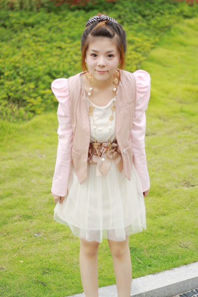 搭配粉色蕾丝裙,休闲又不失甜美哦~~