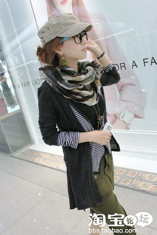故意把头发弄乱,戴上帽子!之前和亲聊天说我喜欢男范儿的围巾,果然啊!对某种东西的偏爱有时候会让别人觉得是种负担,可是自己却独自享受着心满意足!所以感谢爱我的纵容我的人!今天整体都是偏古铜色,从上到下的深色只要用心搭配小配饰就不会沉闷!秋天低调是王道啊~~果然