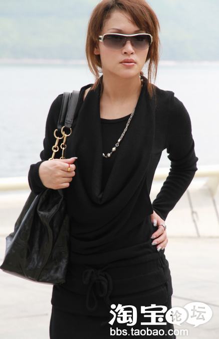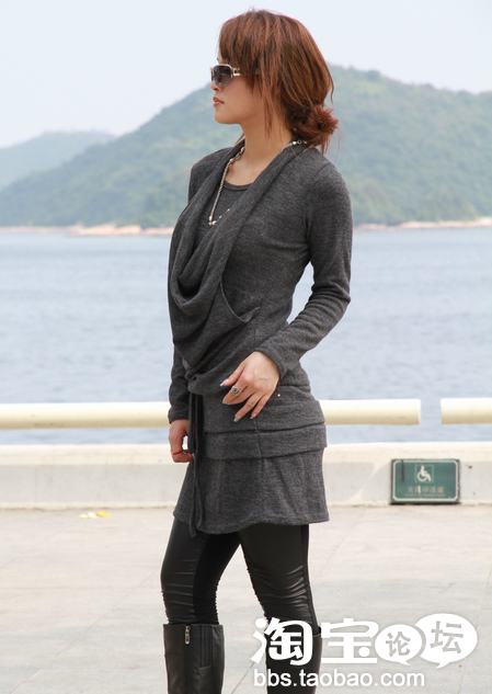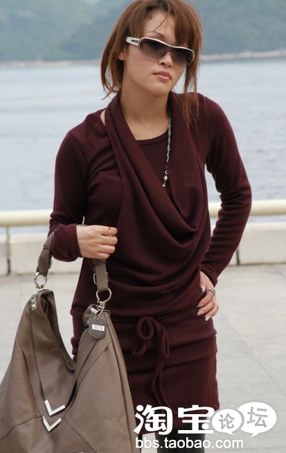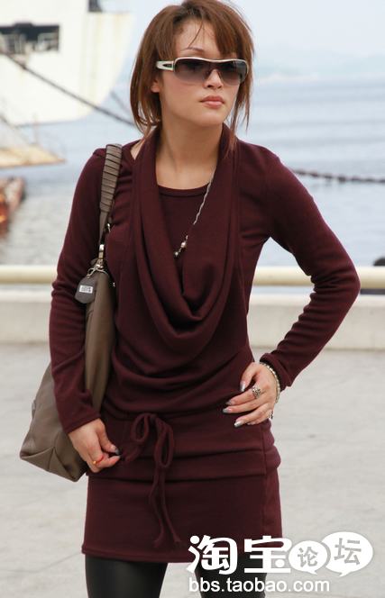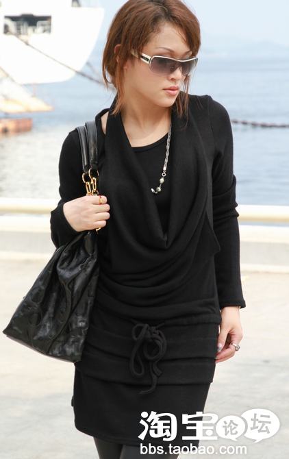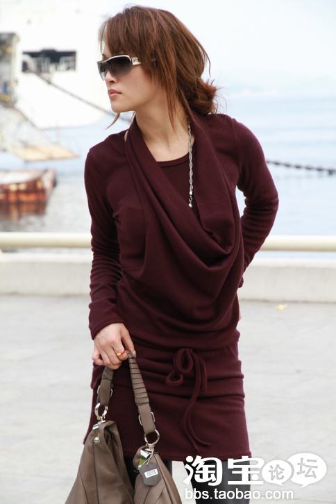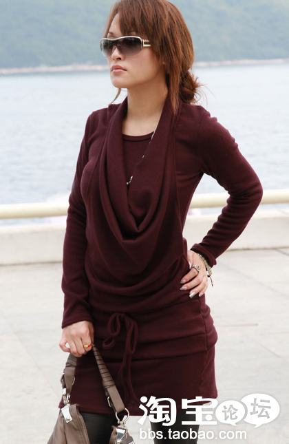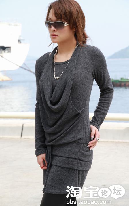 2010年新款欧美 秋冬时尚 胸口大褶皱 棉质 连衣裙