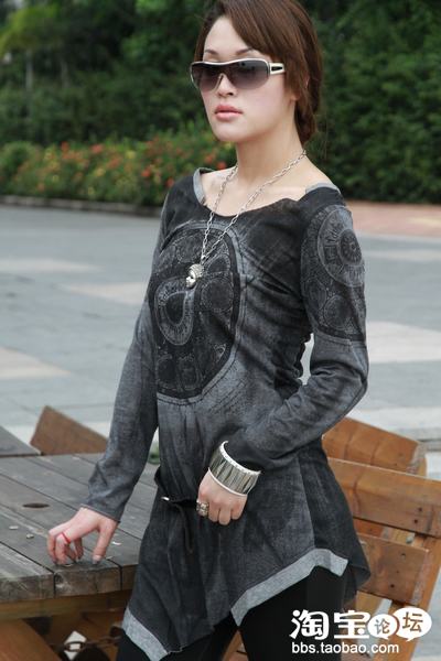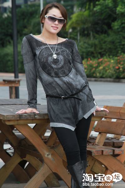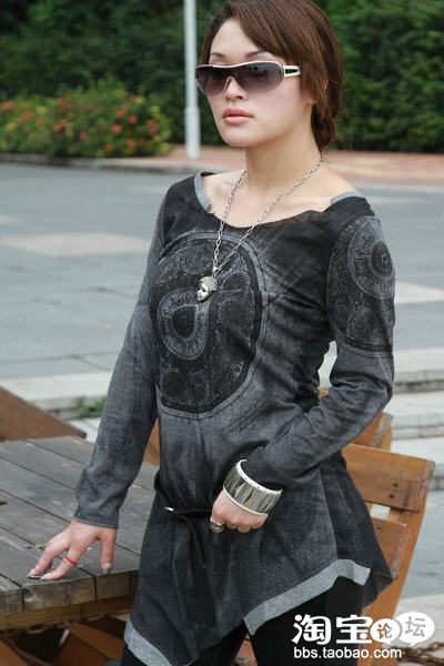 2010年新款欧美 秋冬时尚 纯棉 墨画印花 时尚内搭 连衣裙
