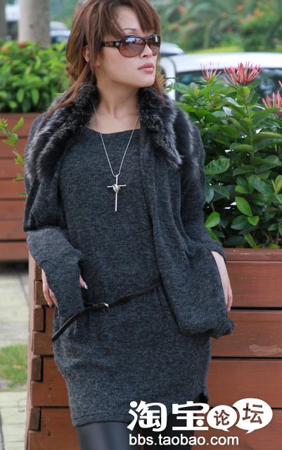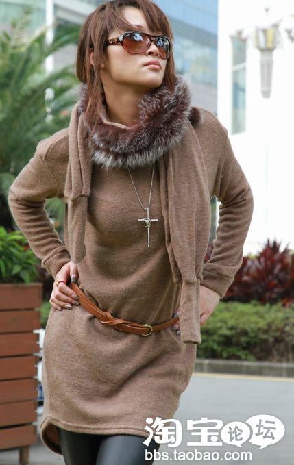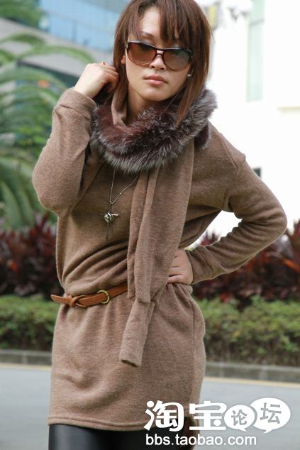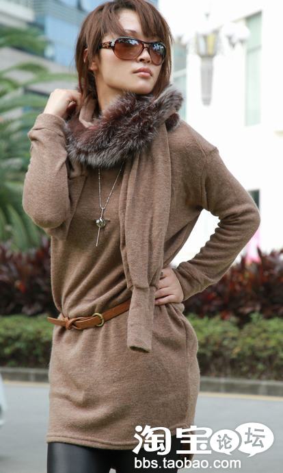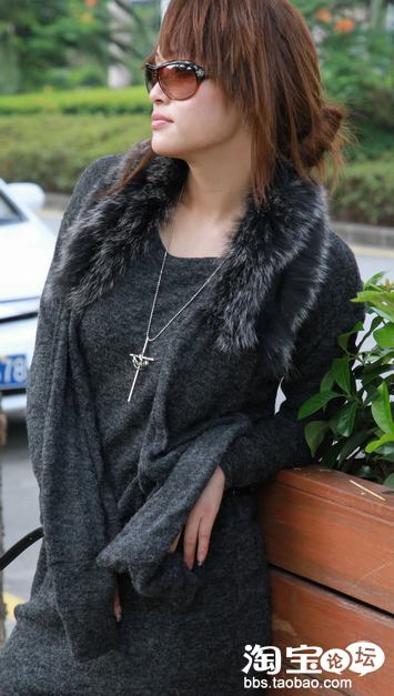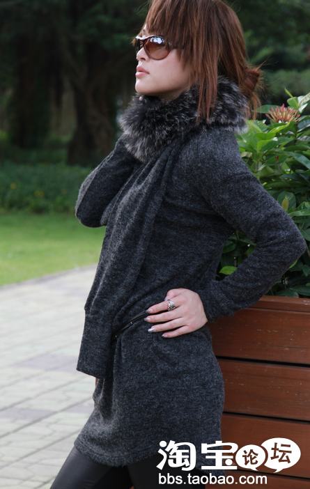 2010年新款欧美 秋冬时尚 狐狸毛围巾 连衣裙