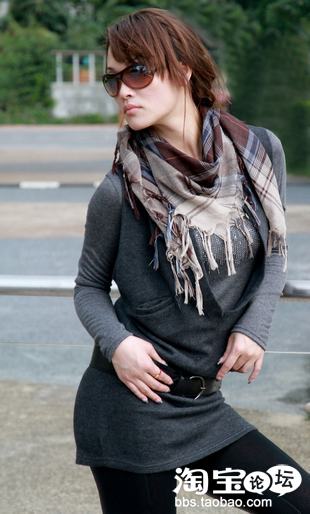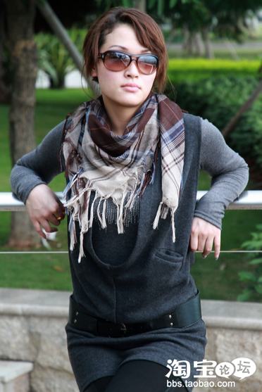 2010年新款欧美 秋冬时尚 3件式 格子围巾+宽腰带