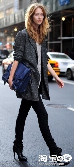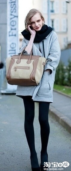 Model们街头装也不吝秀一下美腿,这中头重脚轻的效果不错,脖套呼应的好