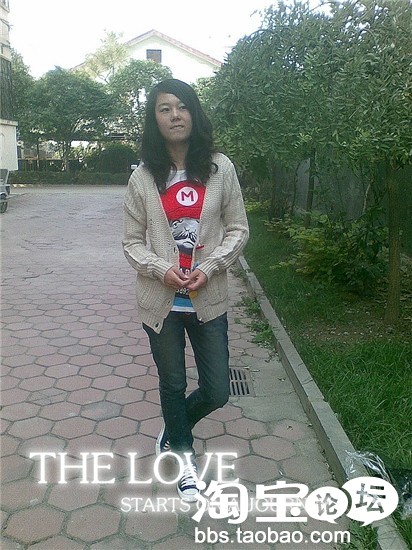 喃波1:超盟简约米白色彩色扣毛衣外套