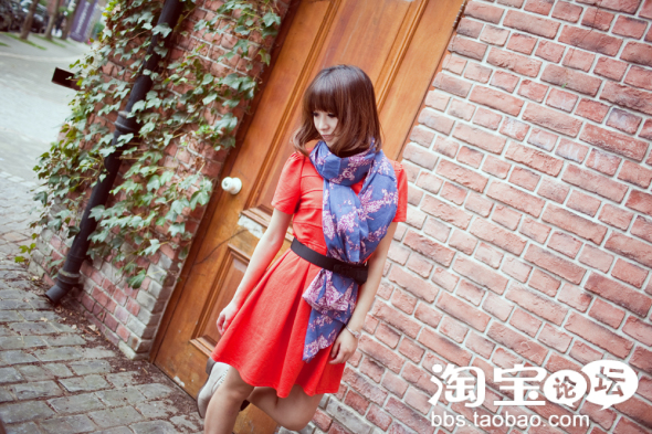紅色的復古圓領洋裝,看似很普通,