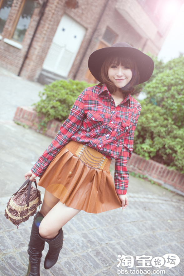 搭配上苏格兰风情的格纹百褶裙