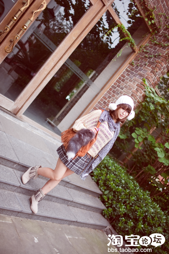 流苏短靴,毛毛帽子,还有豹纹围巾,复古豹纹眼睛??