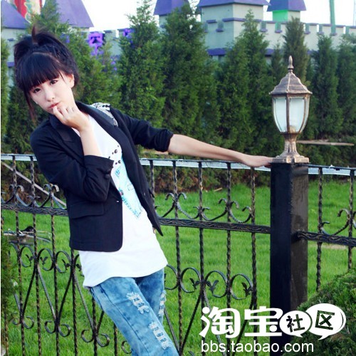 修身短款小外套,针织面料的西服款式,休闲的学院风哦!