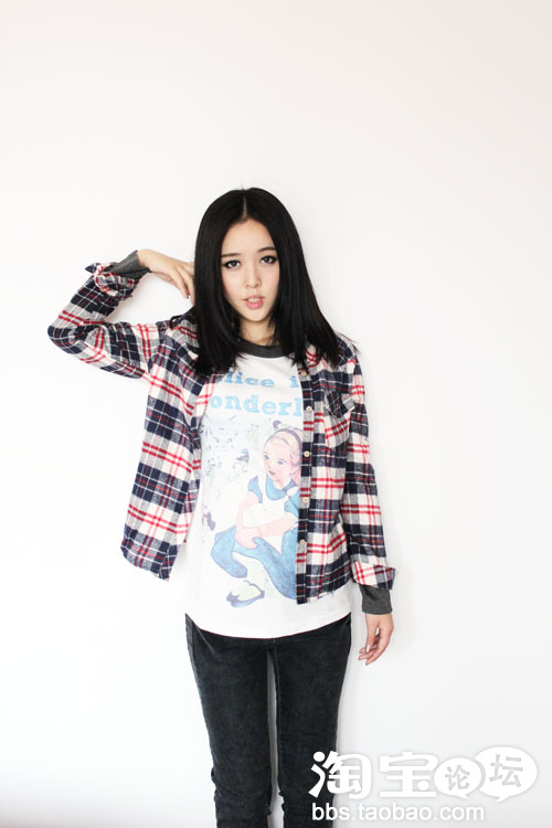 在学校 在家 一般都喜欢穿的比较简单 简单T 格子衬衫 牛仔裤 最完美的组合难道不是吗?衬衫是绒的 适合现在这个季节