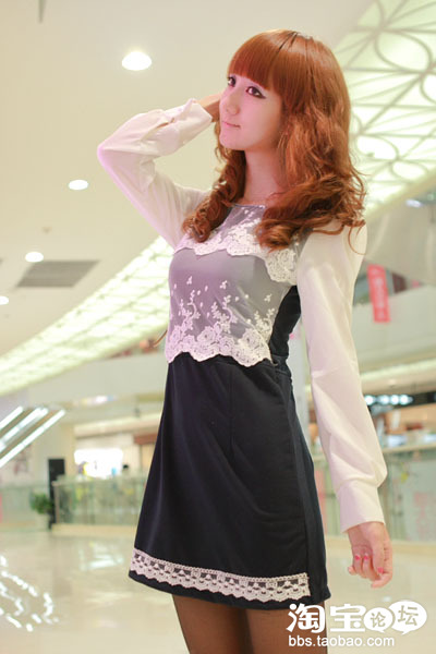 第十一套 蕾丝修身连衣裙+黑色裤袜 名媛风~