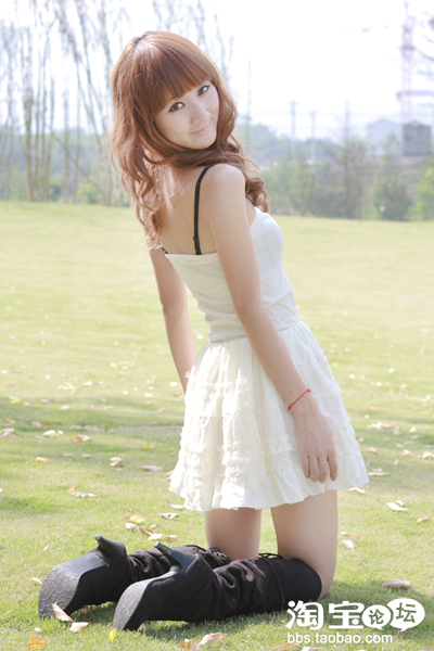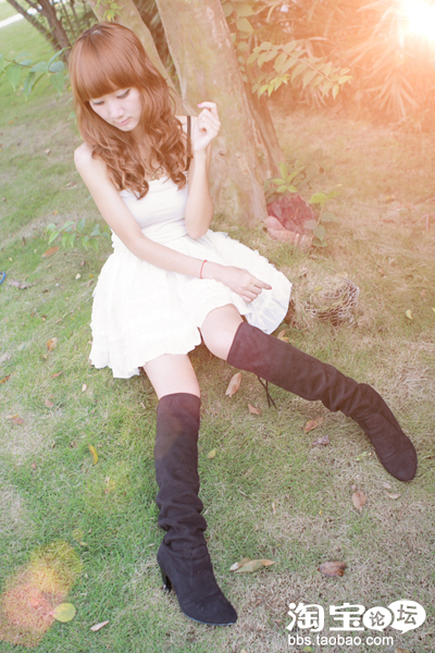 这种裙子因为短小~所以下面配长靴~是非常显身材的说~