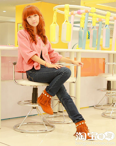 室内的时候单穿也是超美的哦~哈哈哈~~流苏短靴我最爱啦~