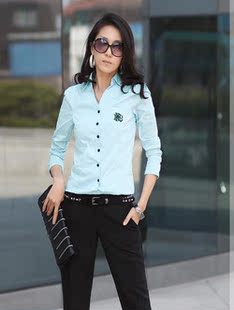 浅浅的蓝色带给人海洋般的欢快心情,深色仿牛仔面料的裤子,配上浅蓝色条纹衬衫同色系的搭配,协调又自然。