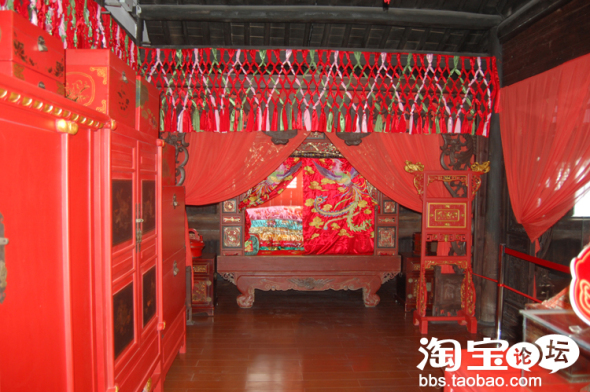 这个是洞房哦。整个宅子挂的都是非常喜庆的,红火火的,