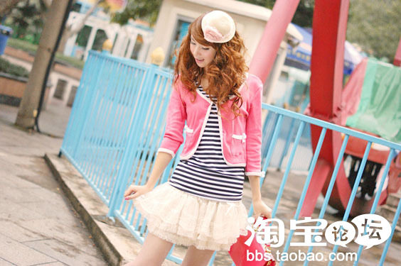 NO.1 白色勾花马甲+粉色蕾丝连衣裙+蝴蝶结头饰早秋,如果觉得开衫还过于厚重,那么就将飘渺的蕾丝进行到底吧!让蕾丝元素进入,秋季的衣柜,性感和时尚,游走得游刃有余吧!想要甜美?必定少不 了它的主要元素,蝴蝶结,粉色,蕾丝。