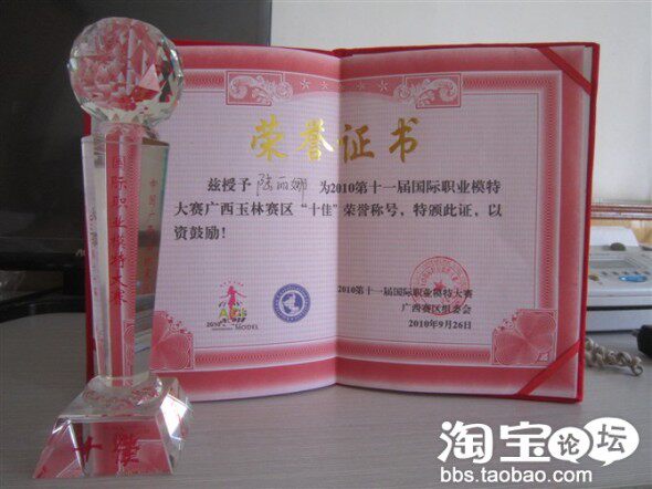 娜娜最近参加了国际职业模特大赛,很荣幸获得了十佳模特的称号。