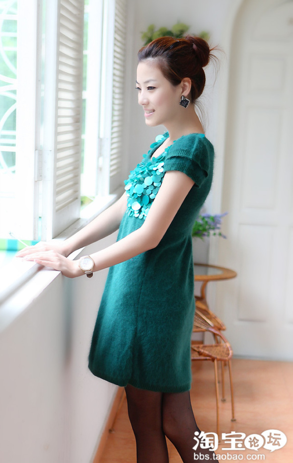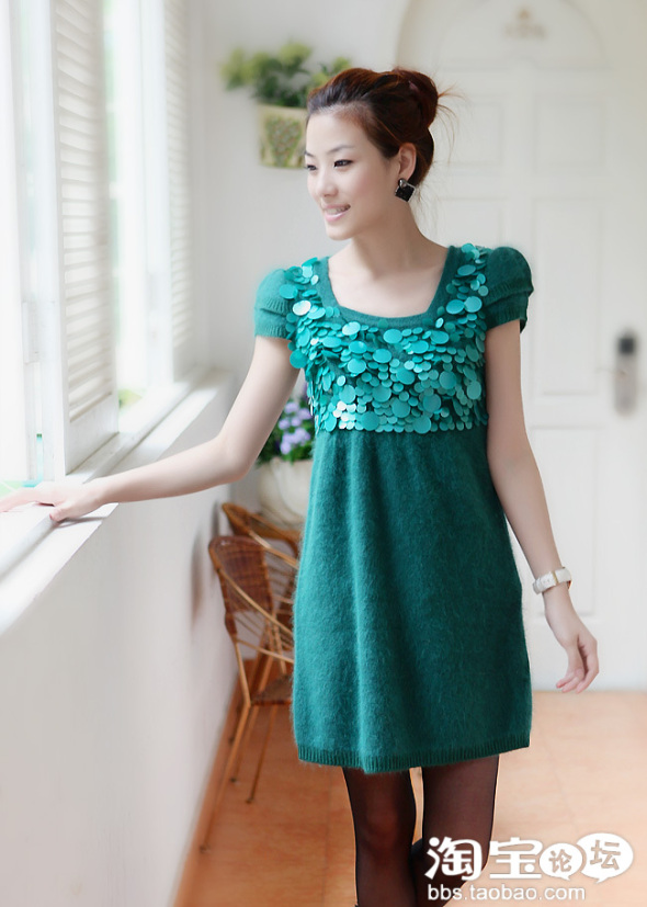 清澈的想湖水的蓝色连衣裙,前片订满闪闪发亮的层叠珠片,是不是就像刚从水面上浮起来的美人鱼呢!双层袖子设计凸显公主气息,最甜美人就是你哦!