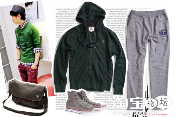 搭配技巧3:喜好简单随意的Boys,逐渐凉爽的秋季是你们扮酷的最佳季节哦,一件款式颜色独特的休闲卫衣就能瞬间提升你的回头率,花点心思内搭一件格子衬衫就更完美了,如果还是站在球场上,那不引起尖叫声都难!