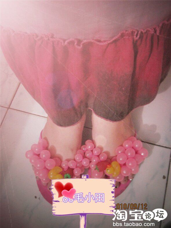 鞋子小田搭配的是,今年比较可爱的,葡萄珠子的夹角拖鞋,颜色也是偏玫红的,