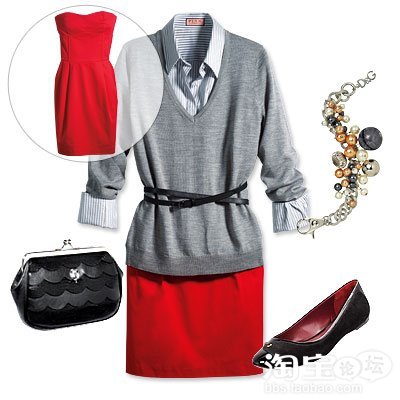 灰色与红色搭配,,,,,,OL知性指数瞬间飑升.优雅端庄,又不俗气