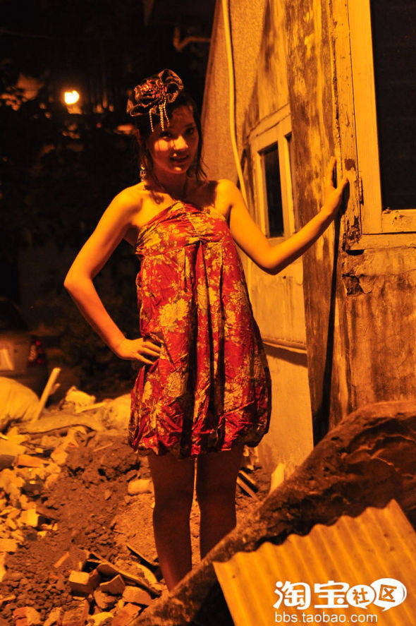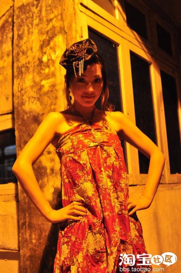 昏黄的灯光下,杂乱的废墟,波西米亚裙,搭配复古碎花发饰小礼帽,很潮流很迷人吧...