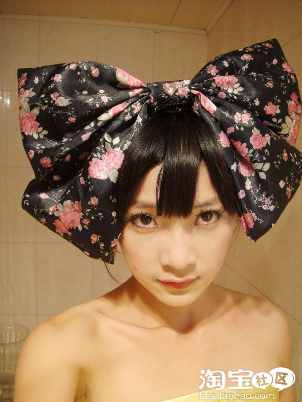没想到这么大的碎花蝴蝶结也能搭配出日本艺妓的感觉..赞!