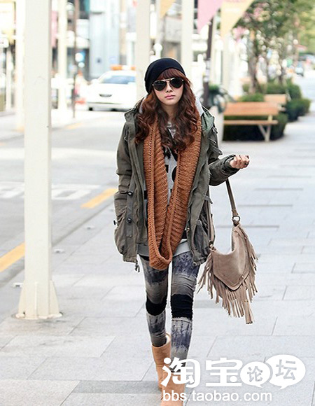 军装式外套今年在欧美很流行 ,本人就特别喜欢这种军绿,看起来干净又耐磨 ,的确很适合在冬季穿呢。长长的围脖和可爱温暖的雪地靴也是今年冬季必备,保暖时尚。