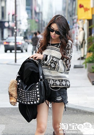 在韩国的时候就很纳闷为什么韩国MM如此钟爱卫衣呢。 估计是韩国人特别喜欢休闲舒适大款的服饰吧。不过以前流行的只是普通式样的卫衣,今年似乎很流行蝙蝠袖式的宽大卫衣呢,这么大大的卫衣包裹着你小小的身体,是不是可爱地让人忍不住心生怜爱呢~