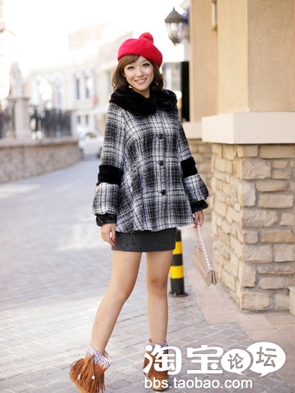 经典的黑白格子短大衣,散摆的设计是我的最爱