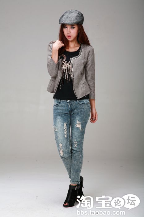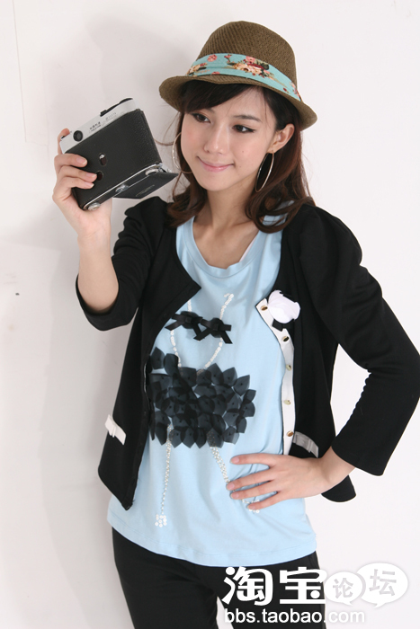 宽松的假两件套,满布的绣珠为衣服增添的无限色彩