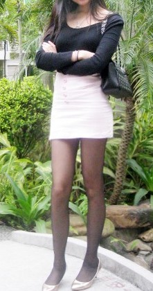 黑色小背心,玫红高腰裙,加上才败的红色小凉鞋~