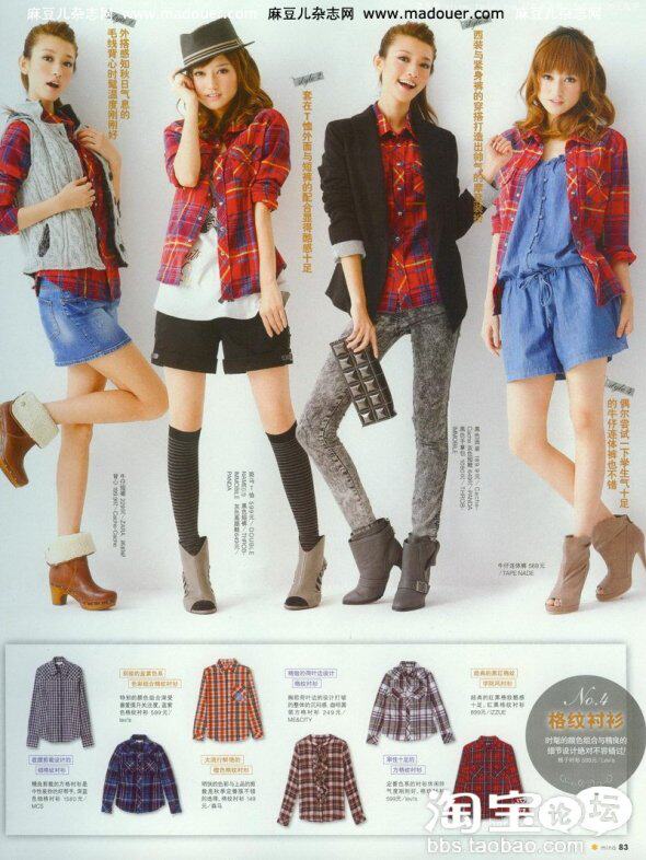 我在这几天的发帖中将呈现所有关于格子衬衫的小搭配~我的灵感来自于每次mina杂志都会有的格子片段,不能放过的经典~~