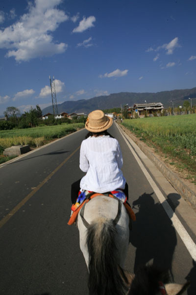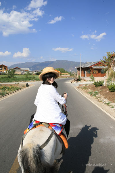 公路上直接拍 哈哈 我控制着马 尽量让它不要撞上车.
