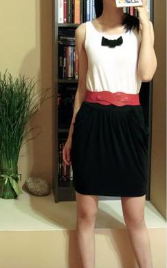 记得有很长一段时间 流行一种中间有一个黑分隔的连衣裙
