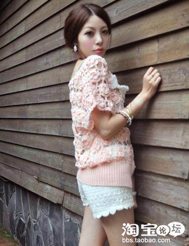 大大的玫瑰花瓣穿在了身上,粉嫩粉嫩的,在初秋,可以搭配小背心穿,随着天气渐渐转凉,里面可以配件高领羊毛衫,穿起来效果是一样的美。小短裤也是毛线的,半圆的边边还挺小女人的。一字领可以斜肩穿,但我觉得一字领穿露出锁骨是最漂亮的穿法,不妨试试喔。