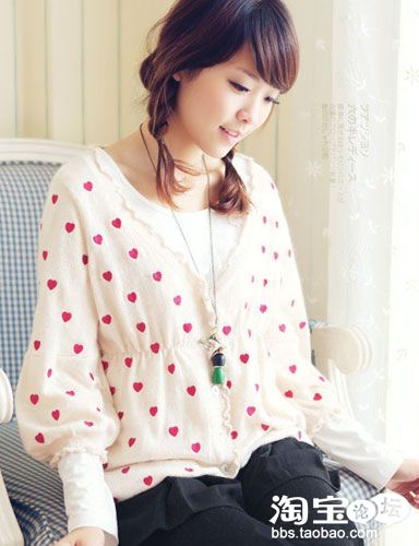娃娃款的漂亮V领毛衣,雅致内敛,布满刺绣的精致爱心点缀,爱不释手,内搭纯白T可爱中不失女人的娇嫩柔美。