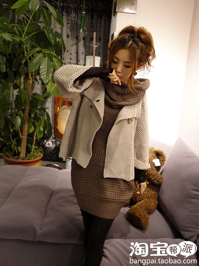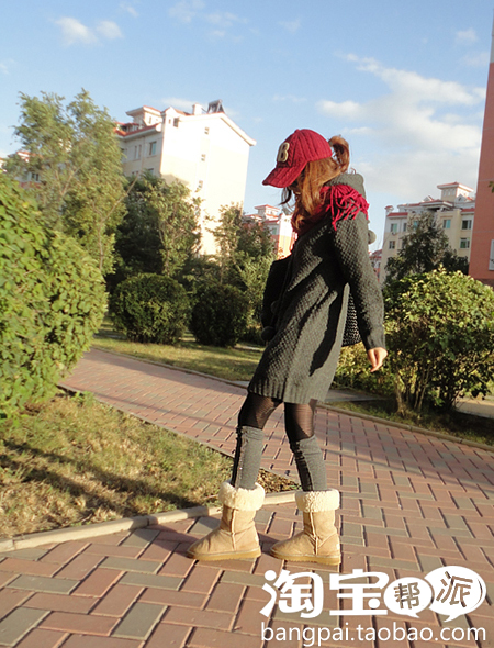 小红帽,红围巾,深灰色长毛衣。。。我妈说这感觉很像韩国人