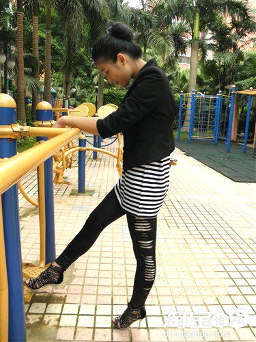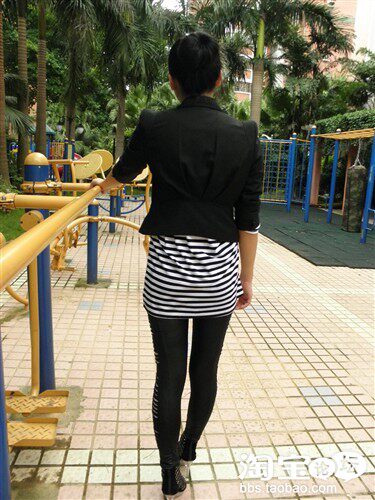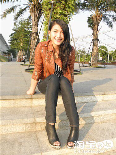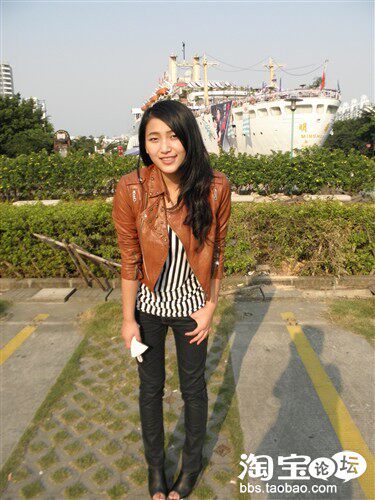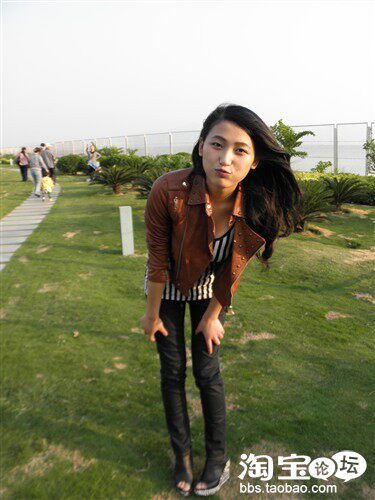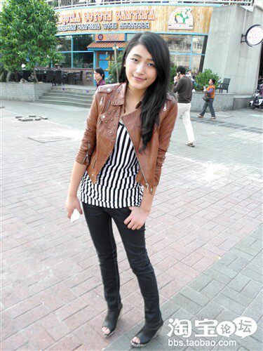 皮衣是经典款,但是什么时候穿都能穿出时尚感,内搭之所以选择竖条纹,觉得竖条纹比横条纹更个性,而且还显瘦,呵呵~~~鞋子是今年大热的铆钉坡跟鞋,鞋底满满的全是铆钉,真的 是爱死啦~~~超有范儿的~~~