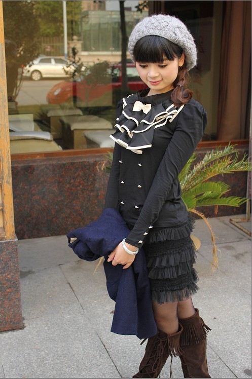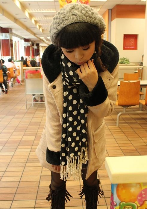 褐色色流苏靴衬托出MM甜美的感觉,内外搭配都是修身款式,想不显瘦都难。