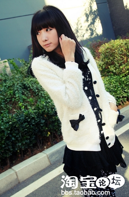 领口的蝴蝶结也恰到好处,把女人的可爱与甜美发挥的淋漓尽致,无论搭配连衣裙还是短裙都会成为瞩目的焦点哦!