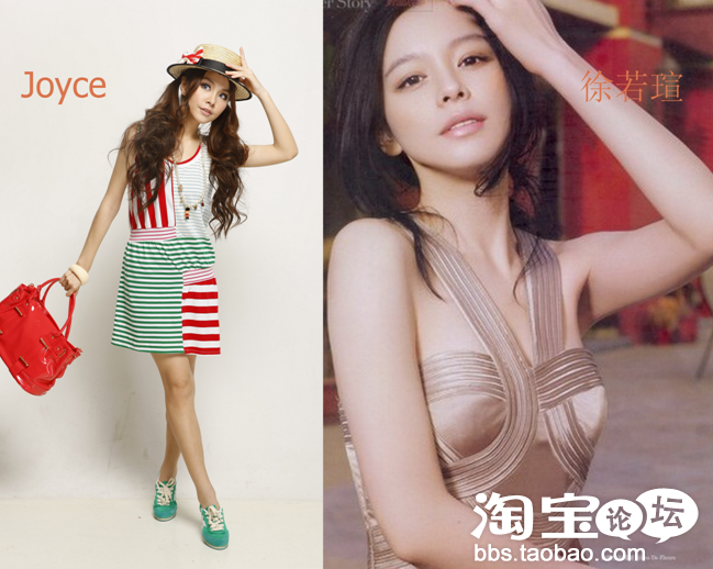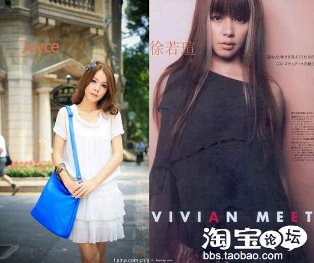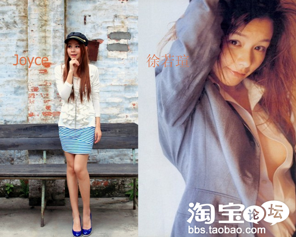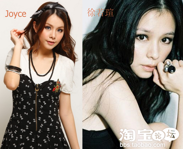 上面的一组图片是不是让大家误以为是徐若瑄的一系列Photo呢?事实上,照片上左右部分分别是两个人。右边自然就是港台大明星Vivian徐若瑄啦,而左边的人就是最近在淘宝上出现的“小徐若瑄”Joyce了。不用惊讶,因为经过电脑的比对结果显示:两个人相似度高达90%!!!所以大家会误以为是徐若瑄也是正常的一件事,不必大惊小怪跑去检查眼睛了,木哈哈~