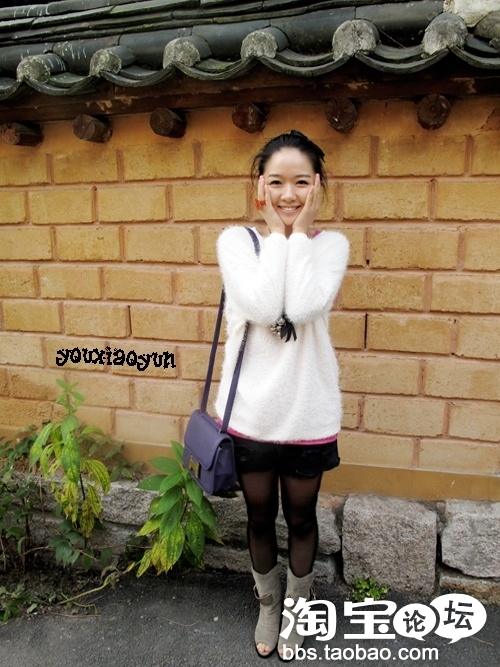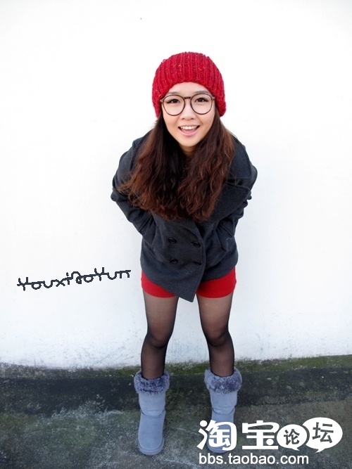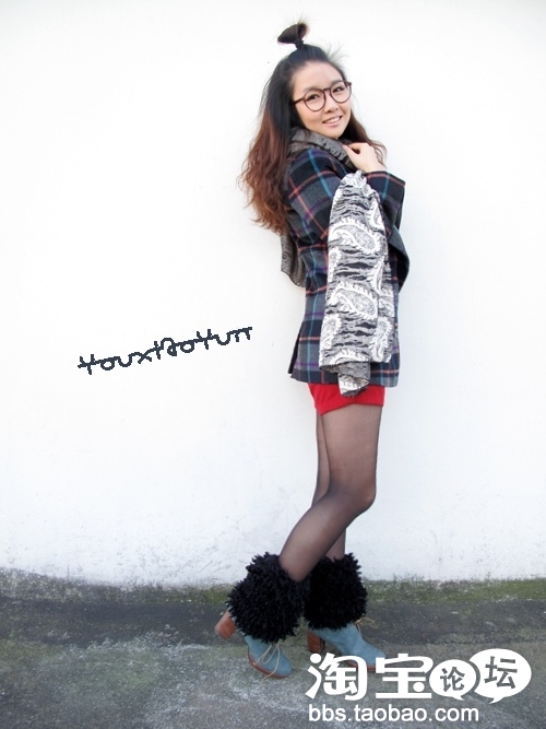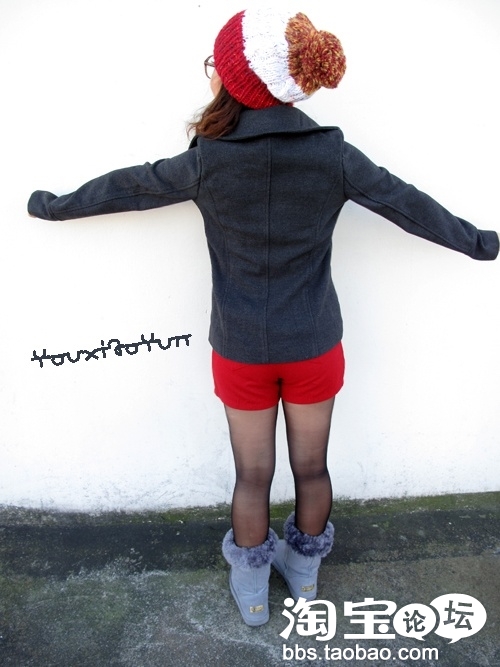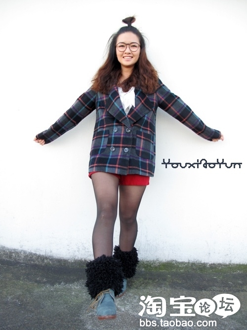 好啦 今天的最后一套了 谢谢仔细看完的亲们 这套的外套也是毛呢的大衣 短裤就没换了 还是红色毛呢短裤 围巾也是那围巾 嘿嘿 最后一套变懒了 然后是袜套啦 今天三色的袜套都入镜了 大家喜欢吗 大家有疑问就加我微博吧 http://t.sina.com.cn/youxiaoyun520