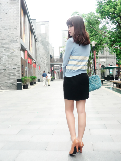 楼主最后一款搭配图,鞋子的跟跟好高哦