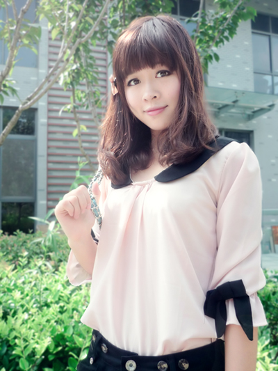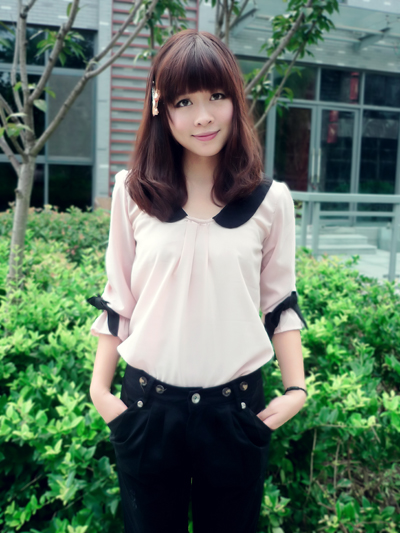 但是爱美的MM也会很注意细节,平凡的雪纺衫蝴蝶结中袖褶皱装饰立刻显得特别起来