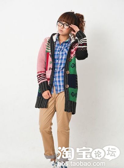长款的冬装外套很厚实,通常配上裤袜就能当做ONE-PIECE来穿。但想增强层次感,我们可以搭配薄一点的衬衣和长裤,形成时尚的三面配合。裤脚的格子卷脚是加分点哦。