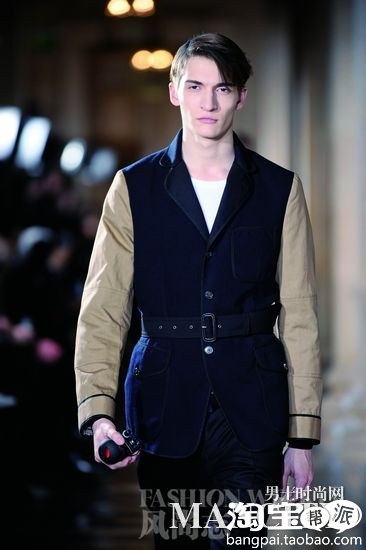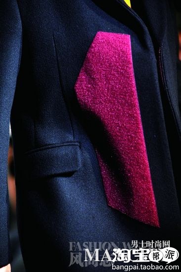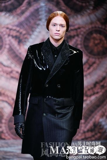 皮革是设计师不会停歇的主推材料,而在男装中尤甚。不过本季的皮革却明显没有以往那样强势丰富,反而成为了退居其次的点缀,不过它依旧是非常亮眼的配角。在Dior Homme和Jean Paul Gaultier,整片的细软羊皮被当作西装和风衣的半面衣襟;在Alexander McQueen和Ver-sace,羊毛混纺大衣和针织杉上都出现了皮革的踪影,但也只是点到为止的设计,因此选择用皮革来搭配才是本季的主题讯号。