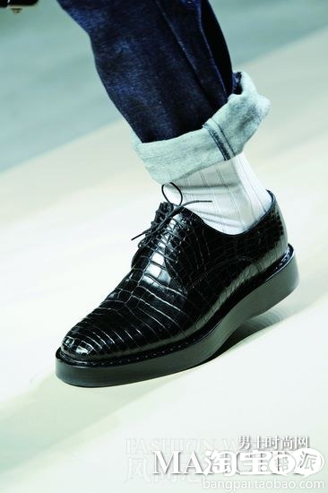 男人裸露脚踝是之前从未有过的一股新强势流行。Tomas Maier 为Bottega Veneta推出了翻卷牛仔裤边配白袜的造型,令人想起James Dean式的美国牛仔;Caten兄弟则将Michael Jackson的80年代舞台风带入这个系列;Frida Giannini与Stefano Pilati用裸踝的穿法为Gucci和Yves Saint Laurent的男人们注入了随意的时髦精神,而Kris Van Assche则以脚踝来重塑Dior Homme的崭新比例。